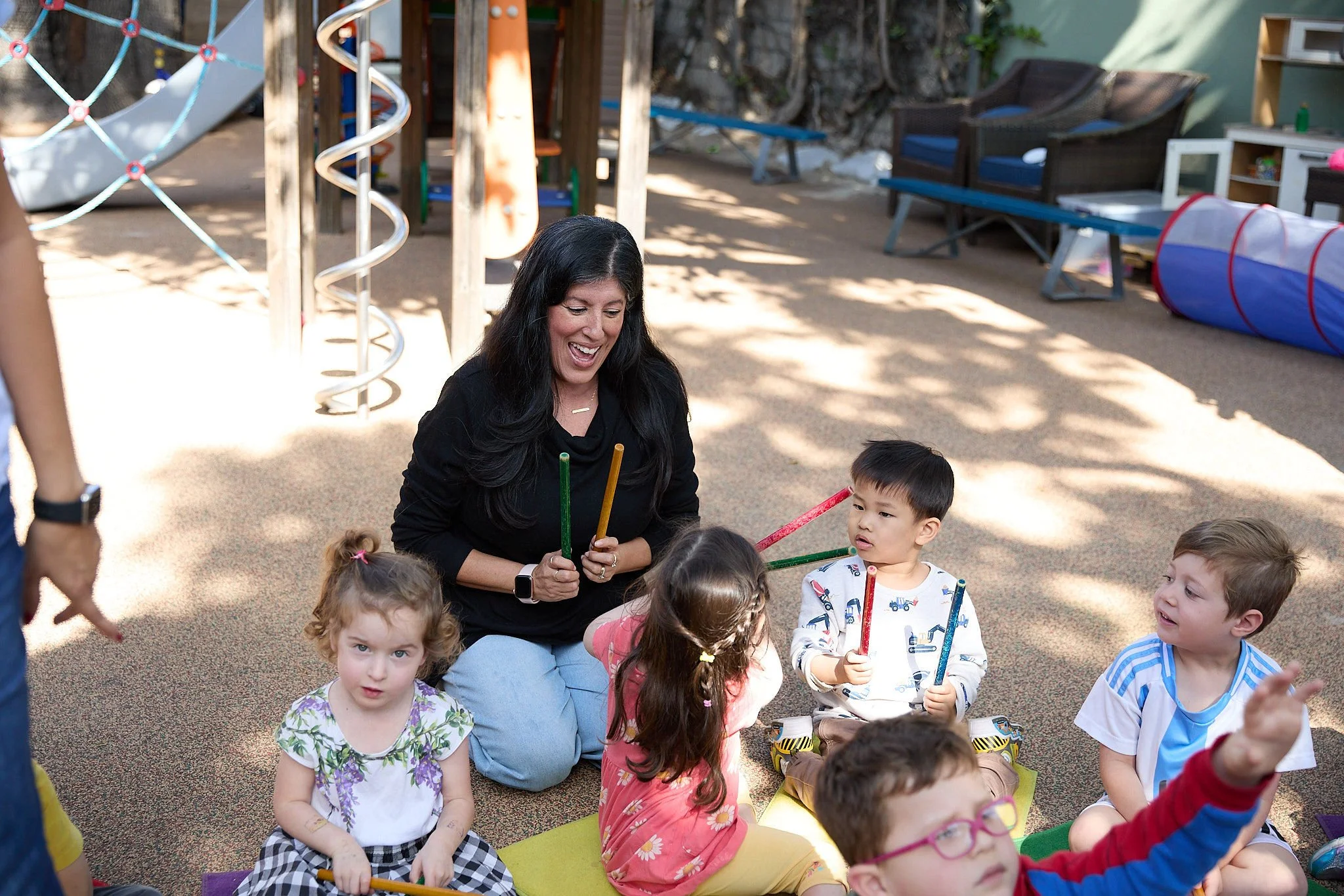 The one and a half hour sessions are intended to give toddlers the opportunity to play freely, express themselves through art and music and begin to interact with one another in a secure, stimulating environment. For parents, it is an opportunity to spend some time with their child, make new friends, and explore a wide gamut of parenting and child development issues. Children must be accompanied by a parent or any adult family member, nannies or babysitters are not allowed.